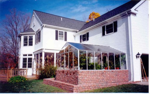The even-span is similar to a freestanding structure except that it is attached to a house at one gable end. It can accommodate 2 or 3 rows of plant benches. The cost of an even-span is more than the cost of a lean-to type, but it has greater flexibility in design and provides for more plants. Because of its size and greater amount of exposed glass area, the even-span will cost more to heat.